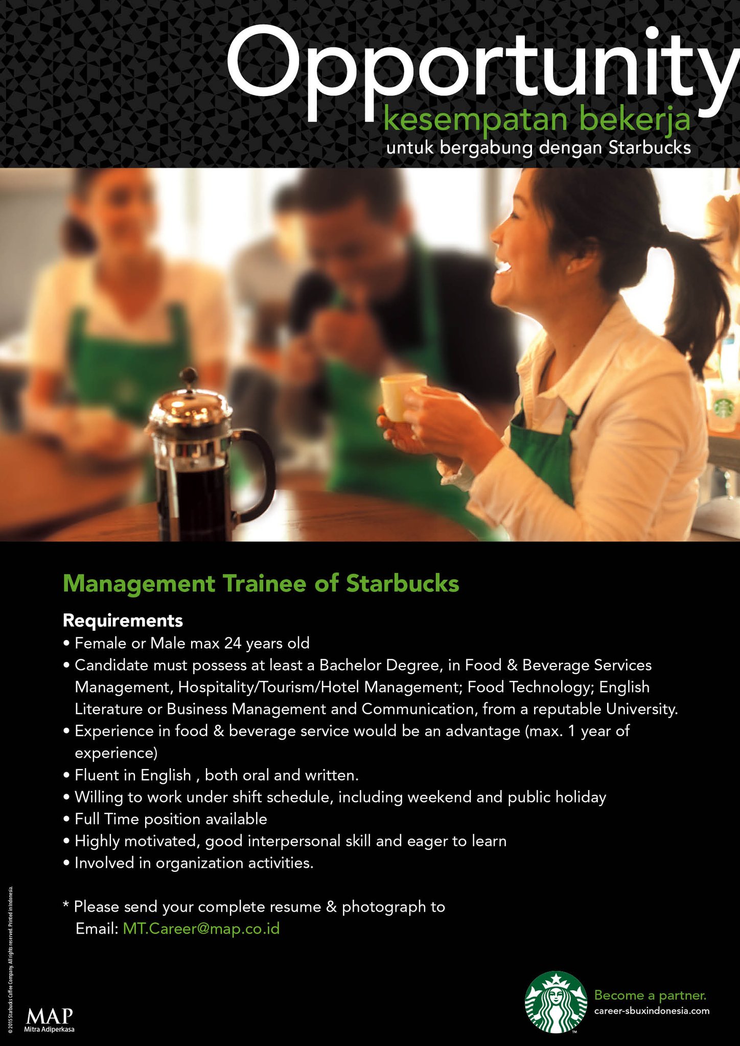 Webjul 8, 2021 · starbucks has identified three key areas of focus that motivate all its capacity and drive all of its impact, according to tenpenny. They can be scaled for your company. Webaug 12, 2015 · starbucks employs more than 150,000 store partners and regional leaders in the u. s. During 2014, nearly 18,500 were promoted to new positions. Webmar 29, 2024 · from innovative recruitment practices to a strong focus on diversity and inclusion, the cafe chain prioritizes building a workforce that reflects its values and. Webnov 13, 2013 · the purpose of this research paper is to analyze starbucks’ recruiting practices, training structures, and overall human resource management strategies in. Expect more than coffee. From the beginning, we set out to be a different kind of company that celebrates coffee craft and recognizes the need for. Webcalling all the coffee enthusiasts! @starbucksindonesia is looking for dedicated individuals ready to brew up joy and spread smiles with every cup of coffee ☕️ join our team and. Webthe secret to starbucks' effective hiring process. Our ceo and founder ashley wong recently sat down with daniel whitney, director of. Learn more about store management careers. Learn about careers in our growing support center. Ready to move forward?.